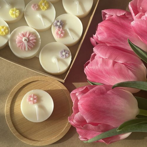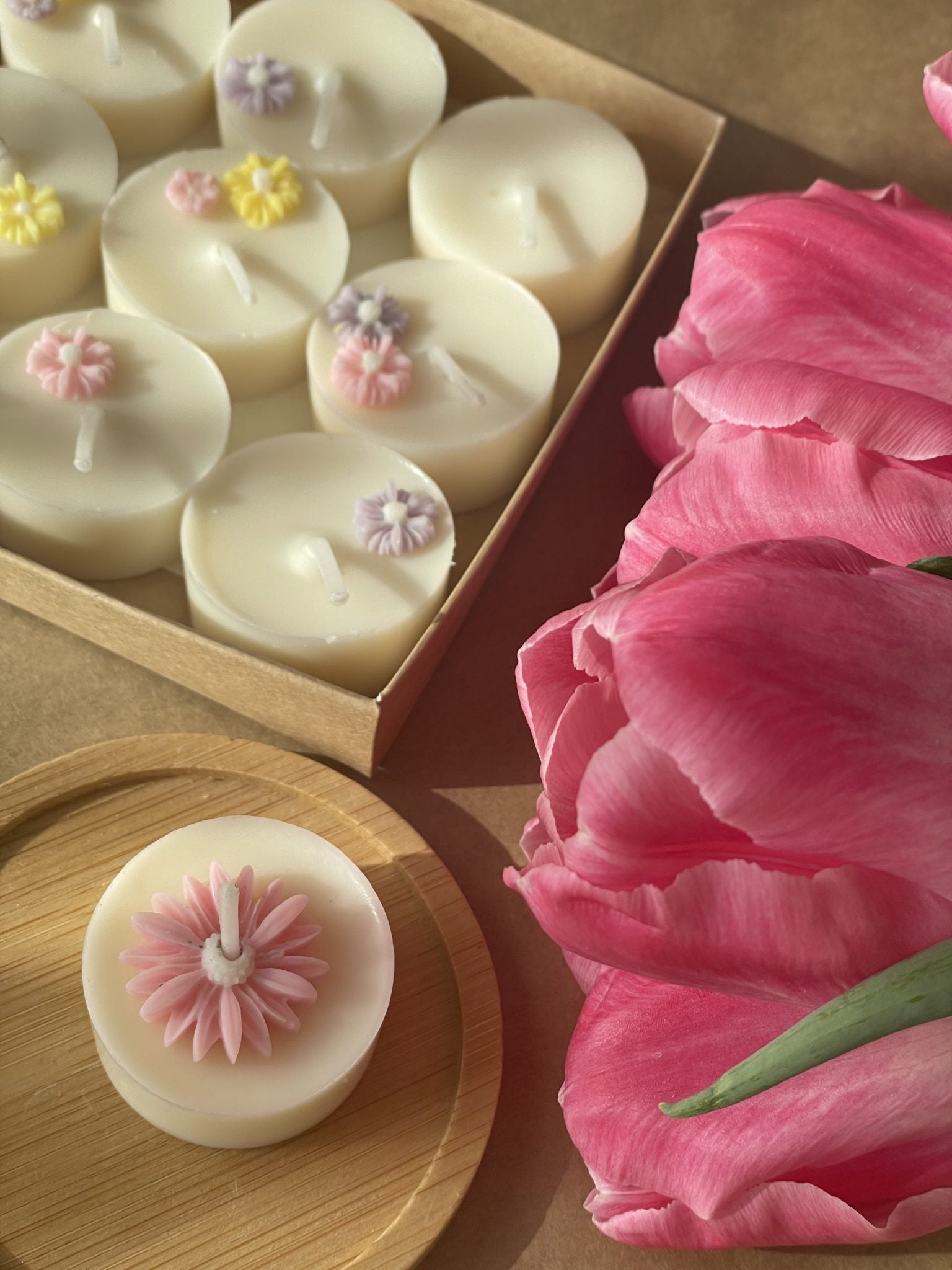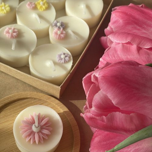 Arbatinės “Gėlėtos” – 9 žavios, sojų vaško kvapnuolės, pavasariu pasipuošusios. Visos jos apie tonka pupelių svajas, citrusų gaivumą palydėtą levandų ir ramunėlių salvėmis.