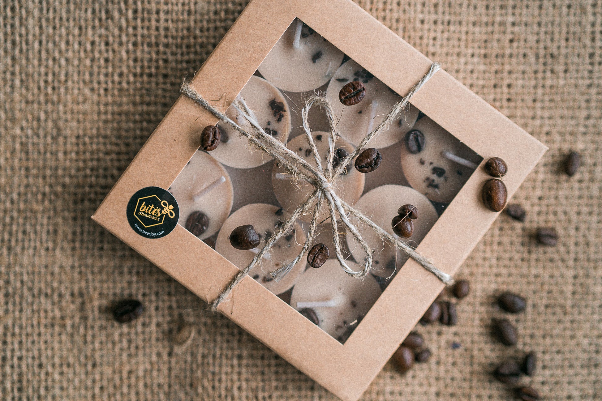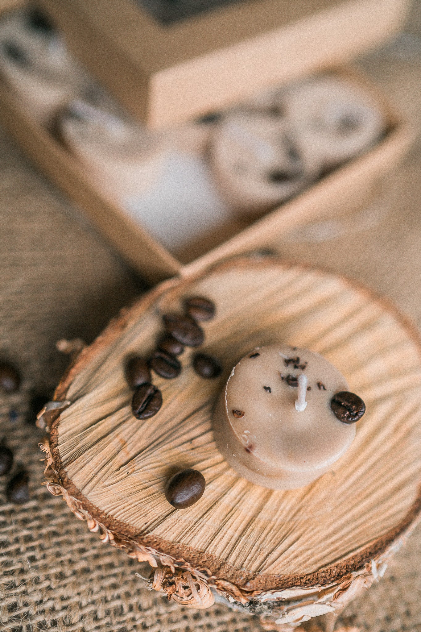 Arbatinės sojų vaško žvakės su kedro riešutų aliejumi ir kava