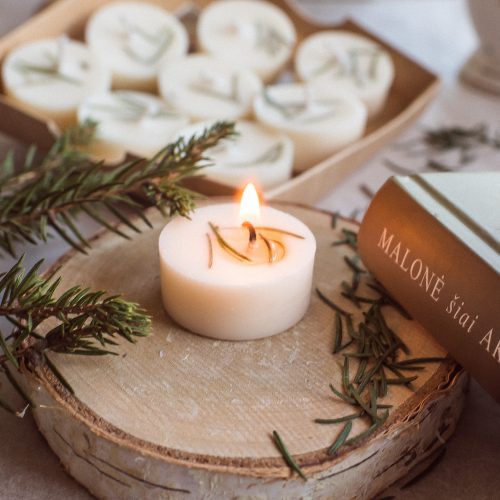 Rankų darbo žvakės, kurios dažniausiai tampa ne tik puikia interjero dalimi, bet ir puikia dovana artimiesiems, kolegoms ir draugams. Pieninės spalvos sojų vaško žvakės su eglišaliais ir mėtų, pušų spyglių ir eukalipto eteriniais aliejais, kurie pasižymi ne tik peršalimo ligų gydomosiomis savybėmis, bet ir dezinfekuojamomis savybėmis. Šios žvakės pripildys namus gaivos, suteiks teigiamą poveikį emociniam fonui ir dezinfekuos mūsų namų orą.