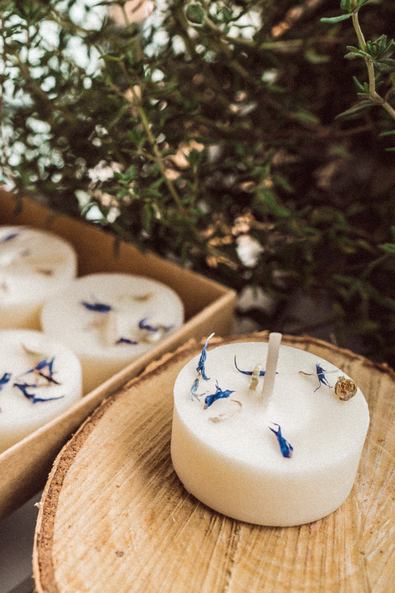 Arbatinės sojų vaško žvakės su vanile ir rugiagėlių žiedais