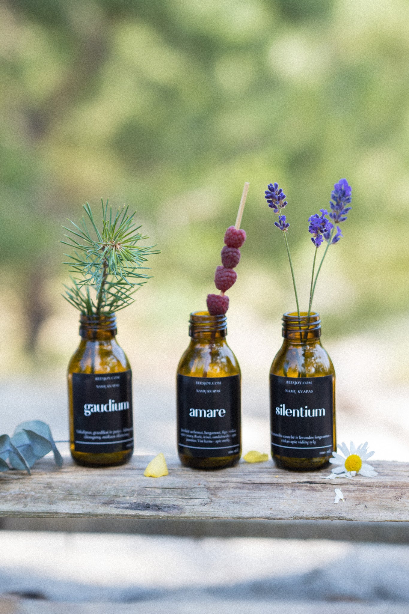 gaudium - eukaliptas, gvazdikai ir pušys - labiau apie džiaugsmą, miškuos išlaisvintą.