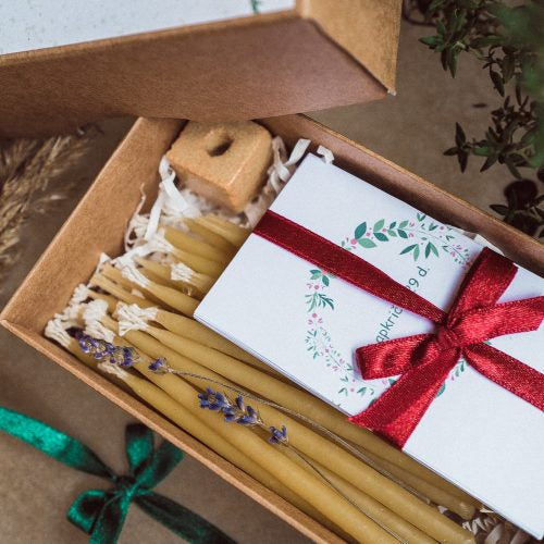 Dėžutėje rasi: žvakidę ir žvakes su apmąstymais kiekvienai Advento dienai. Žvakės degimo laikas 20 min – tiek laiko tikrai gali skirti sau ?