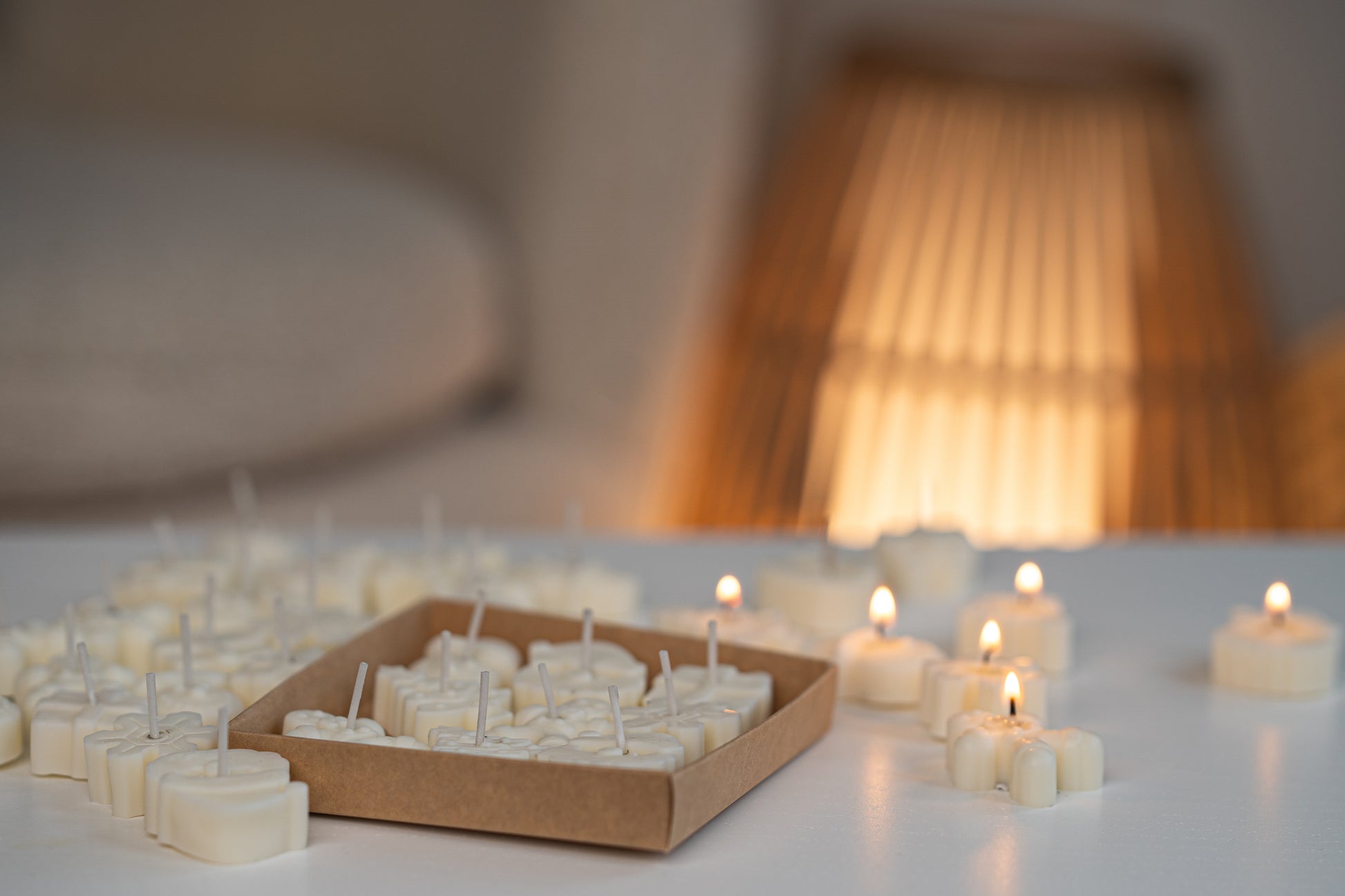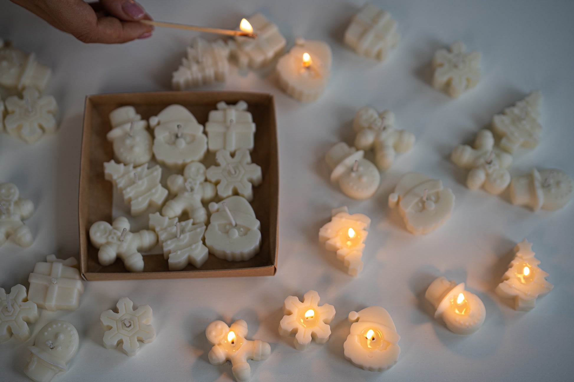 Šventinės arbatinės – labai žaismingos arbatinės žvakutės (galima naudoti ir kaip tirpukus!), kurios savyje talpina skirtingus aromamtus! Žinoma, kad šventinius.. :)) eglutė – pušis, meduolis – imbieriniai sausainiai, snaigė – pipirmetė, senelis – saldainiai, o dovana – telieka staigmena! Žinoma, žvakučių dekoratyvinė forma neleis žvakei pilnai ir iki galo išdegti, tad reikėtų pasirūpinti padėkliuku ar žvakide (arba deginti/naudoti tirpinimui skirtuose induose)