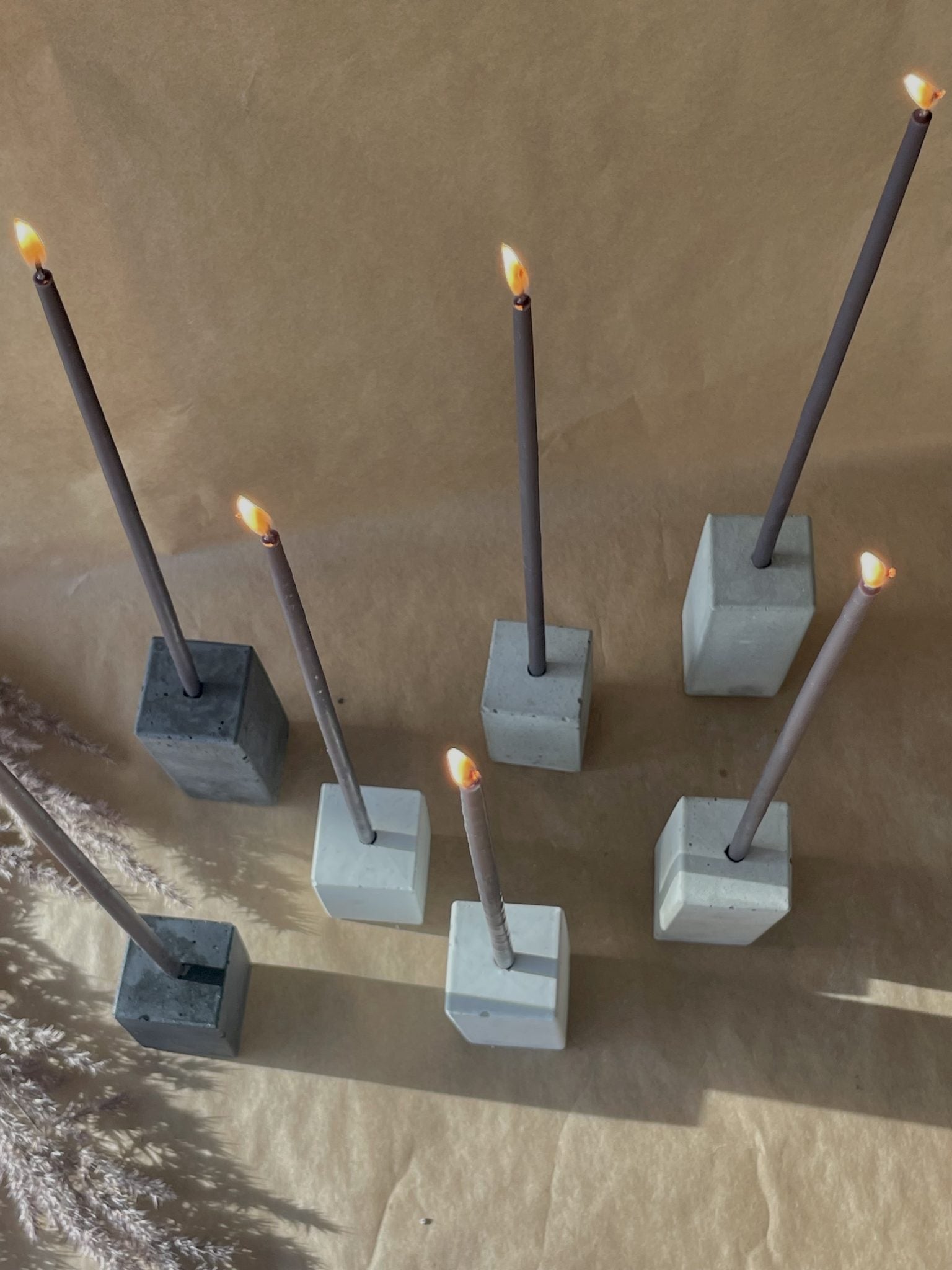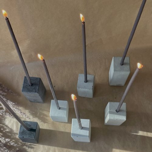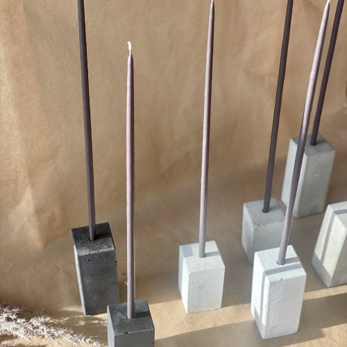 Žvakidės plonoms žvakės – akmens tekstūros, universalaus dizaino, todėl puikiai tiks bet kokio interjero namams. Parduodamos kartu arba atskirai.